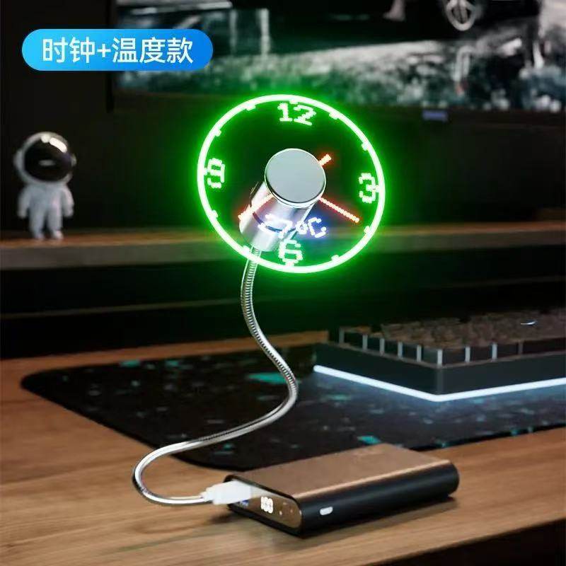 usb全息时钟风扇电脑旋转投影碎影3d带智能时间的小电扇迷你桌面