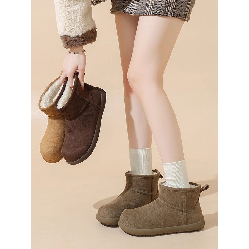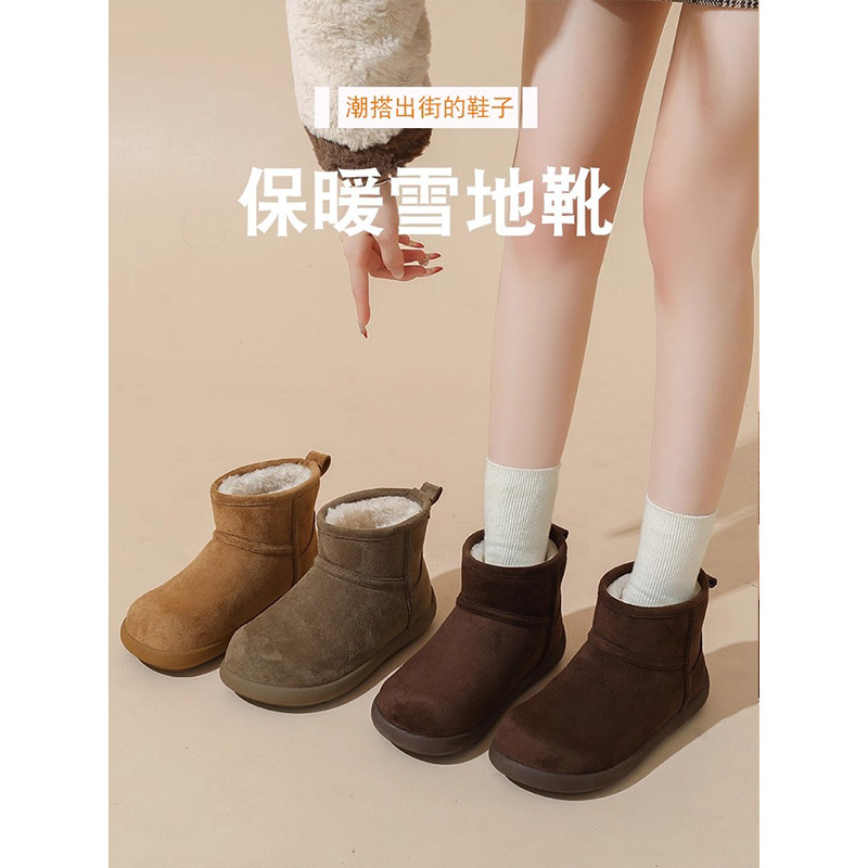 低帮厚底雪地靴女2025新款冬季懒人一脚蹬毛毛棉鞋加绒加厚女鞋子