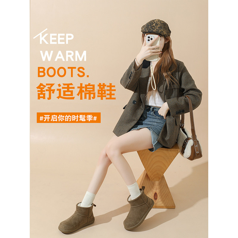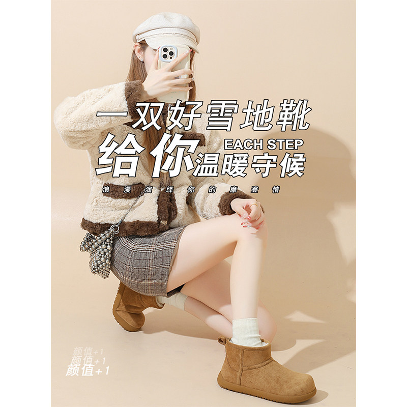 骆驼雪地靴女鞋2025冬季新款加绒保暖棉鞋女加厚东北厚底增高短靴