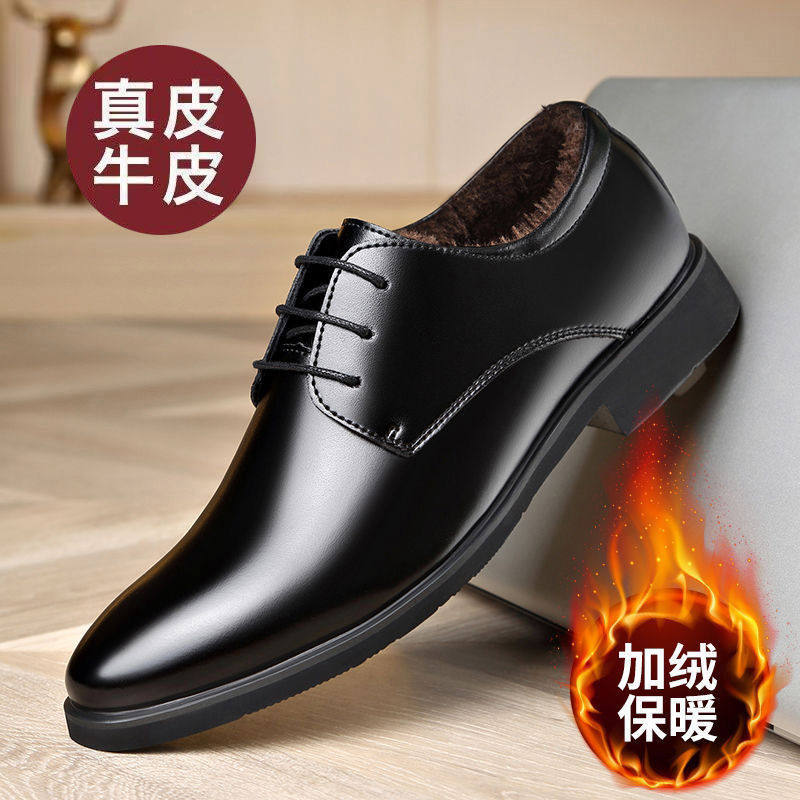 老人头皮鞋男真皮冬季中老年爸爸鞋大码男鞋加绒厚底商务休闲皮鞋