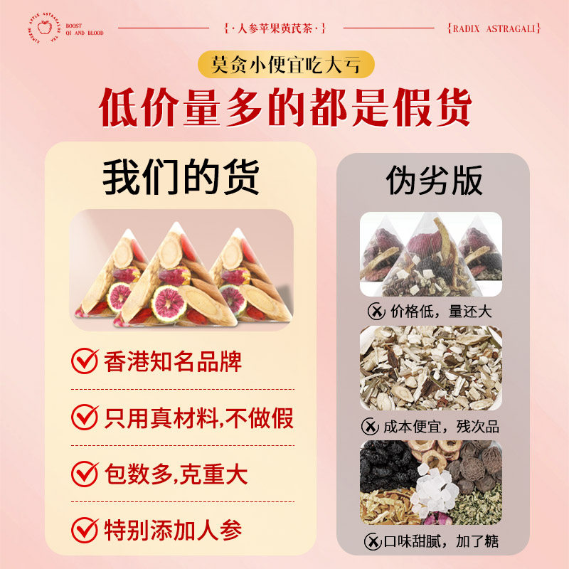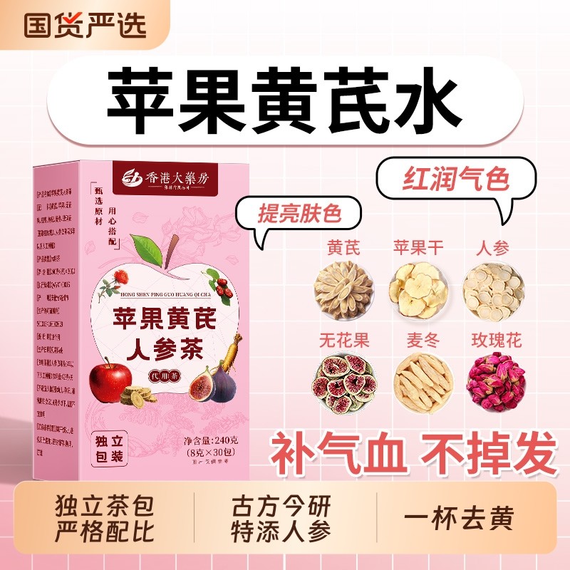 苹果黄芪水红枣枸杞茶女人调理补气血祛黄气素颜水泡水饮品养生茶