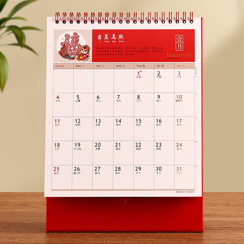 木雷14张金雕艺术月历2026年台历定做定制商务办公桌面摆件新年竖款时尚中国风红色国潮记事本马年日历订制