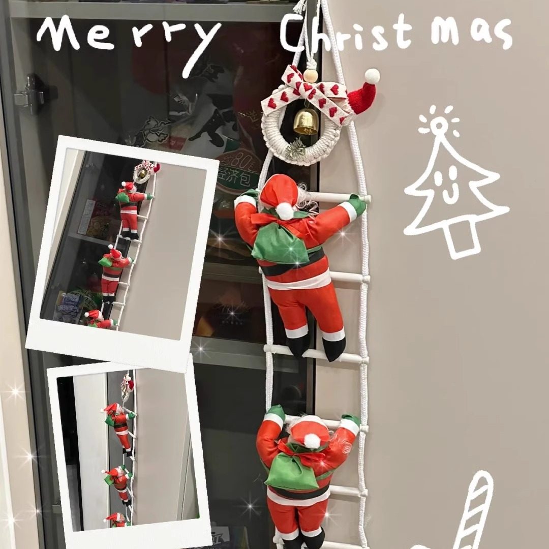 圣诞节装饰圣诞老人爬绳门挂摆件店铺创意公仔挂饰氛围感场景布置