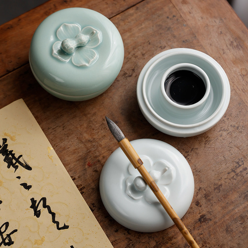 好柿花生墨盒带盖不干墨书法专用书法墨盒墨池带盖碟文房四宝墨砚墨汁砚台多功能笔搁