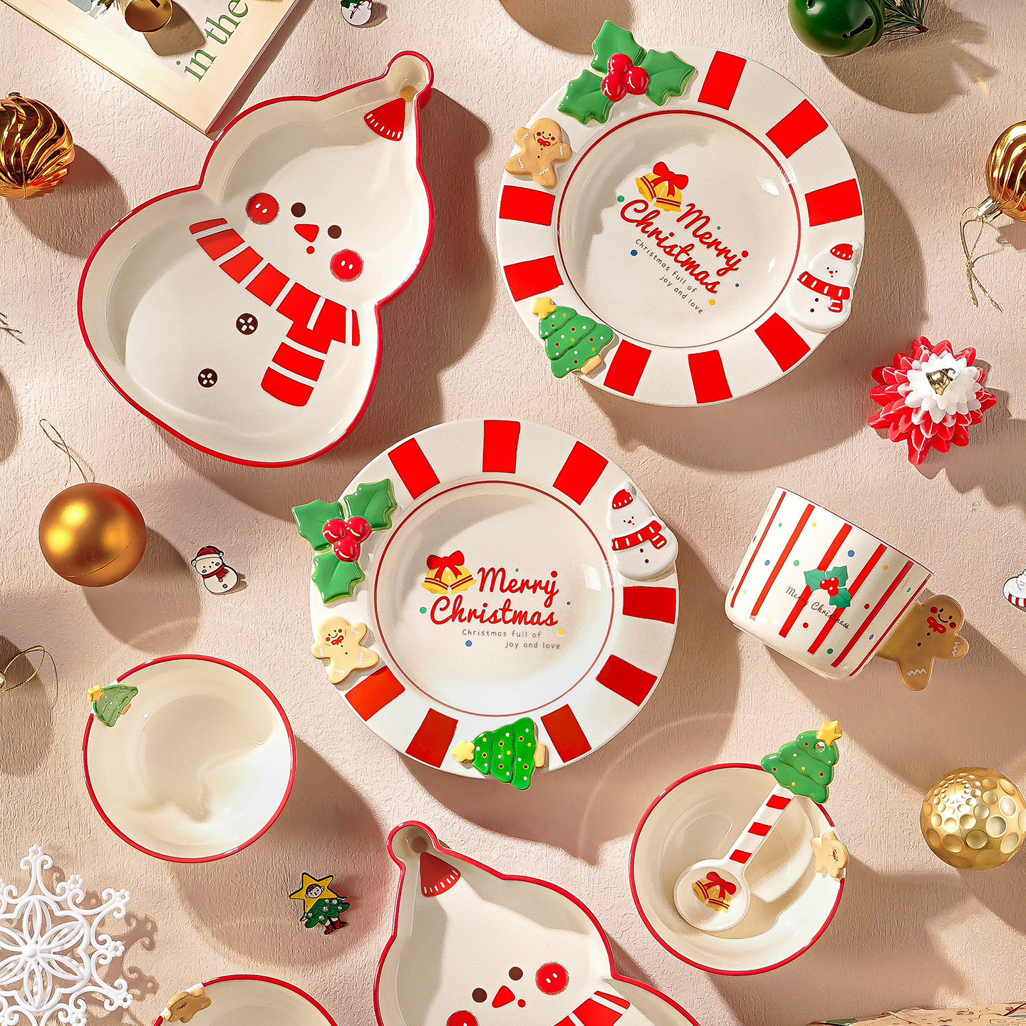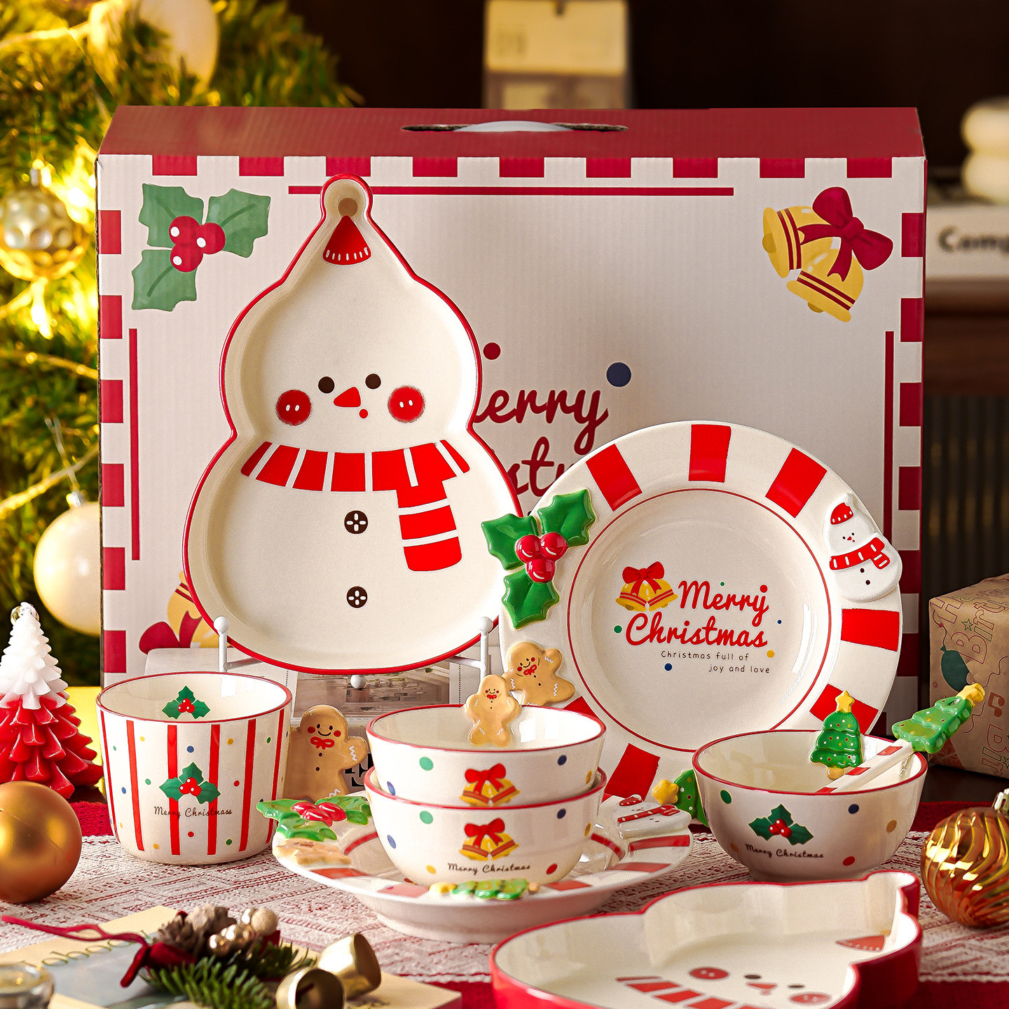 圣诞节礼物餐具碗碟套装礼盒陶瓷碗家用2025新款高颜值碗盘套装