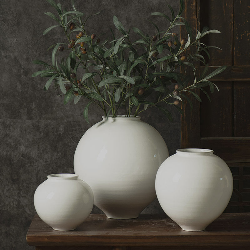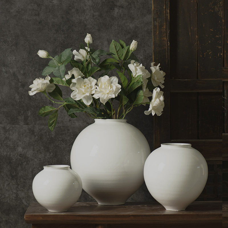景德镇手工陶瓷复古花瓶白色陶艺摆件禅意插花干花民宿装饰品玄关