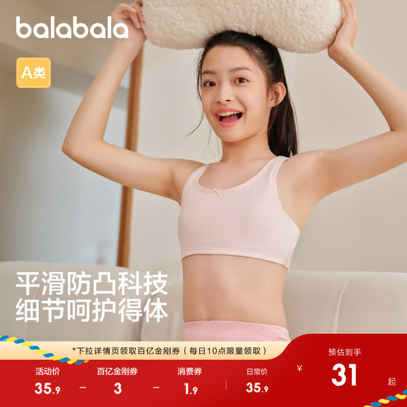 巴拉巴拉女童内衣发育期儿童小背心文胸防凸点防走光高弹透气学生