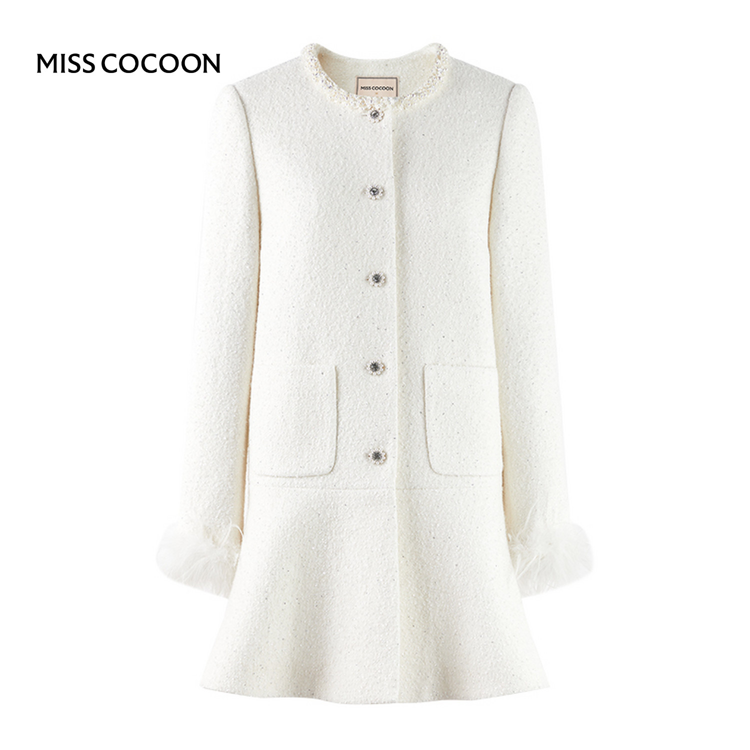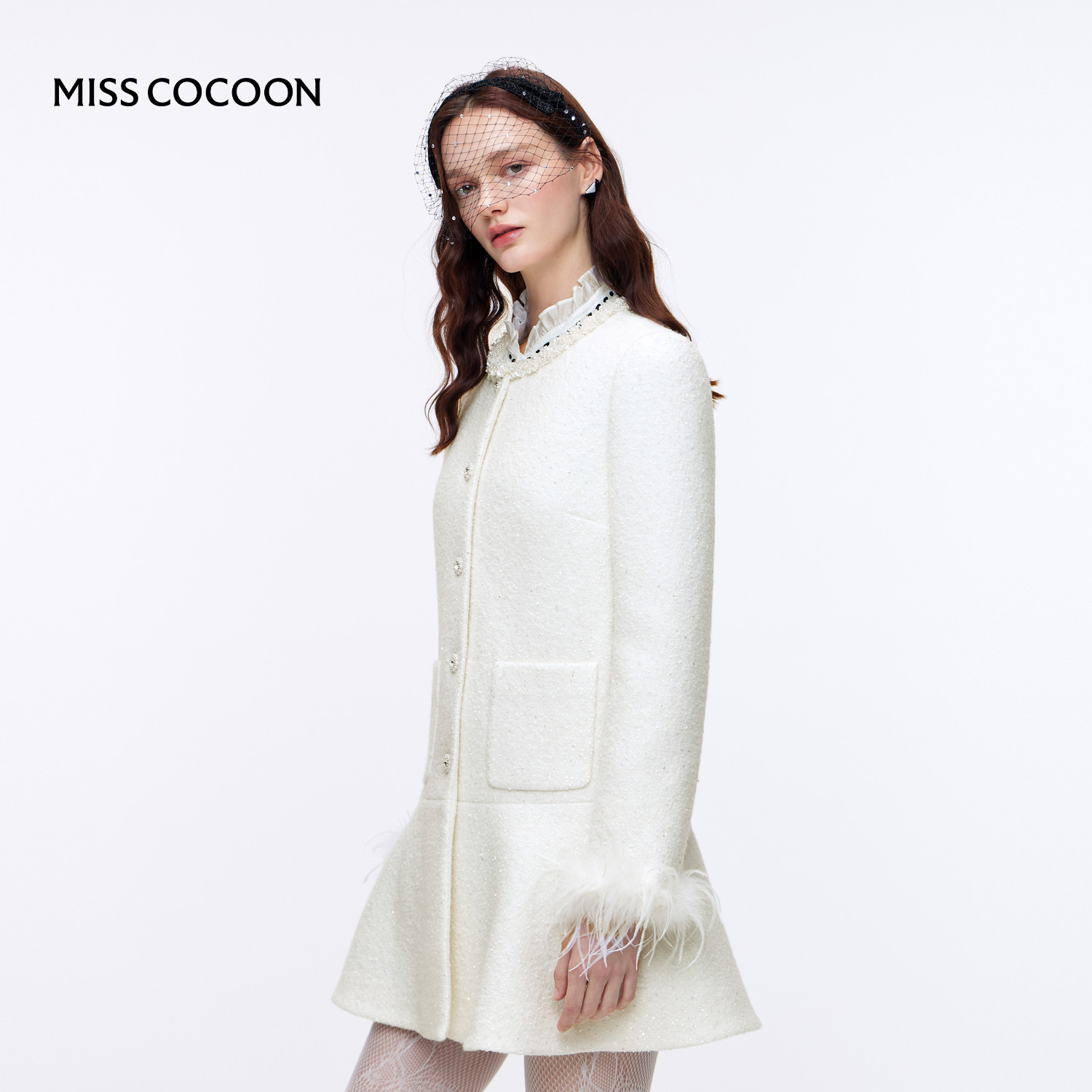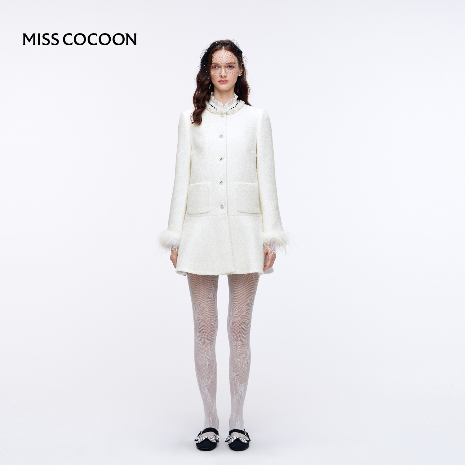 MISSCOCOON可可尼毛呢外套女2025秋冬新款小香风粗花呢绵羊毛大衣