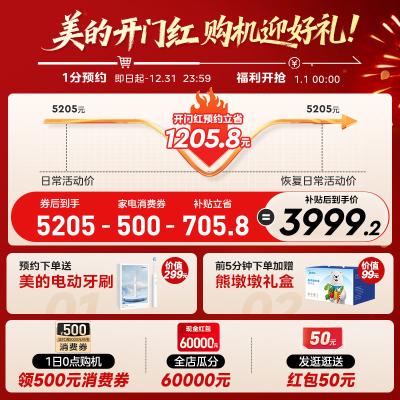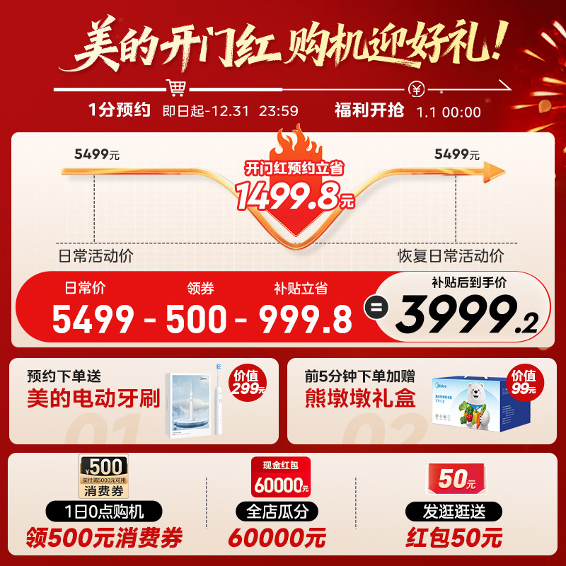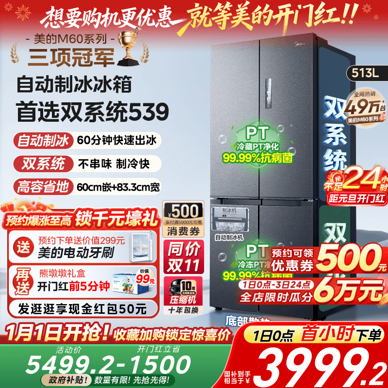 美的M60双系统539零嵌入式制冰冰箱超薄十字双开四门家用风冷无霜