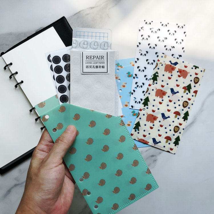 A6活页夹L形收纳袋卡通PVC防水文件夹大钞发票贴纸袋标准六孔配件