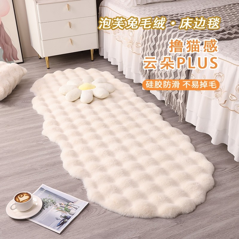 仿兔毛卧室床边地毯儿童床毯泡泡毛绒地垫飘窗垫客厅沙发垫子白色