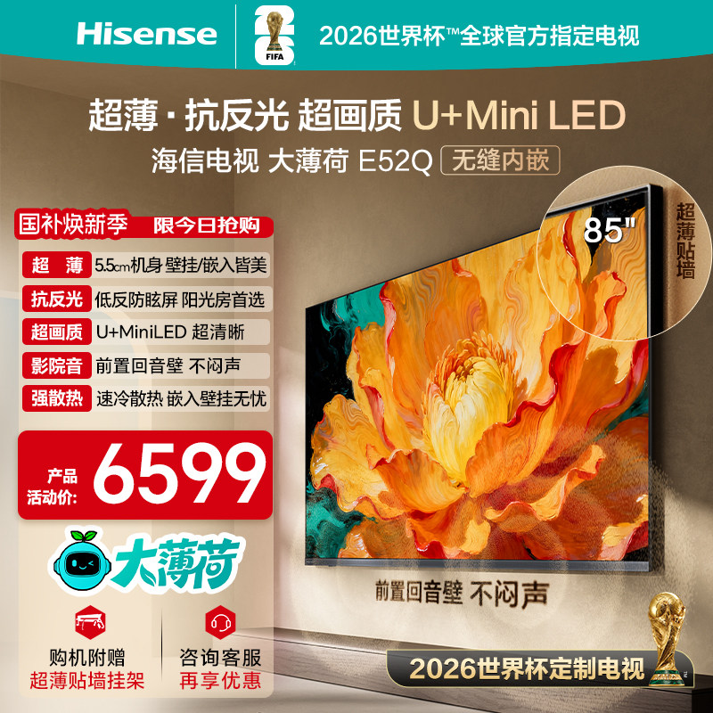海信电视大薄荷E52Q 85吋MiniLED超薄贴墙低反屏世界杯定制电视机