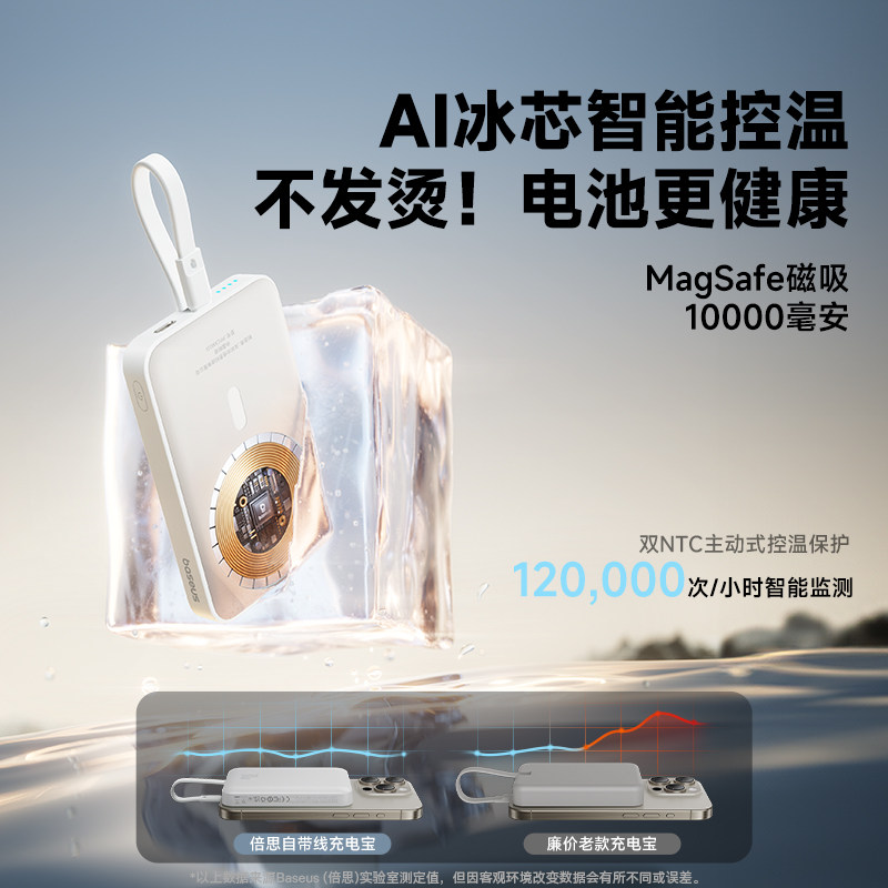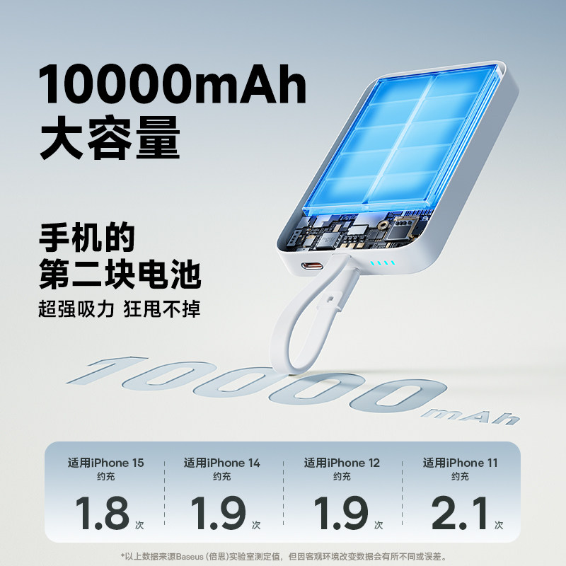【新国标3C认证】倍思磁吸充电宝自带线2026新款超薄小巧便携magsafe快充适用苹果iPhone17无线充移动电源