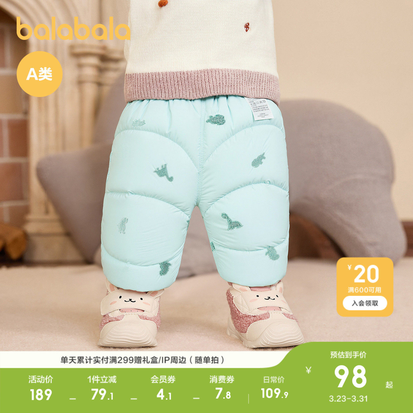 巴拉巴拉童装儿童羽绒裤男女童长裤宝宝裤子舒适保暖时尚洋气潮酷