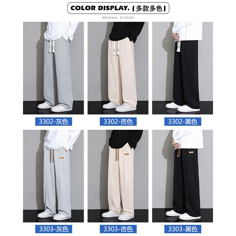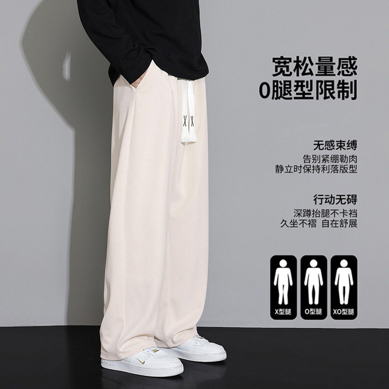 WASSUP JALYN灰色直筒休闲长裤子男士春夏季宽松垂感阔腿运动卫裤