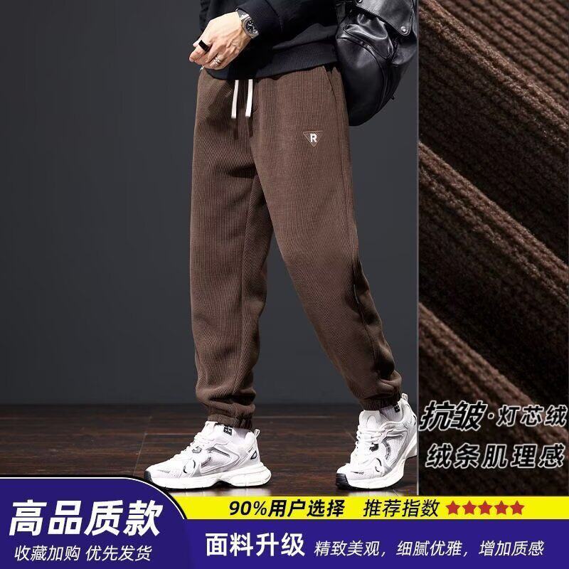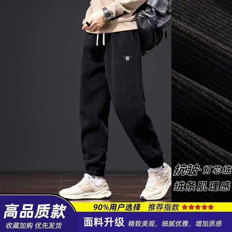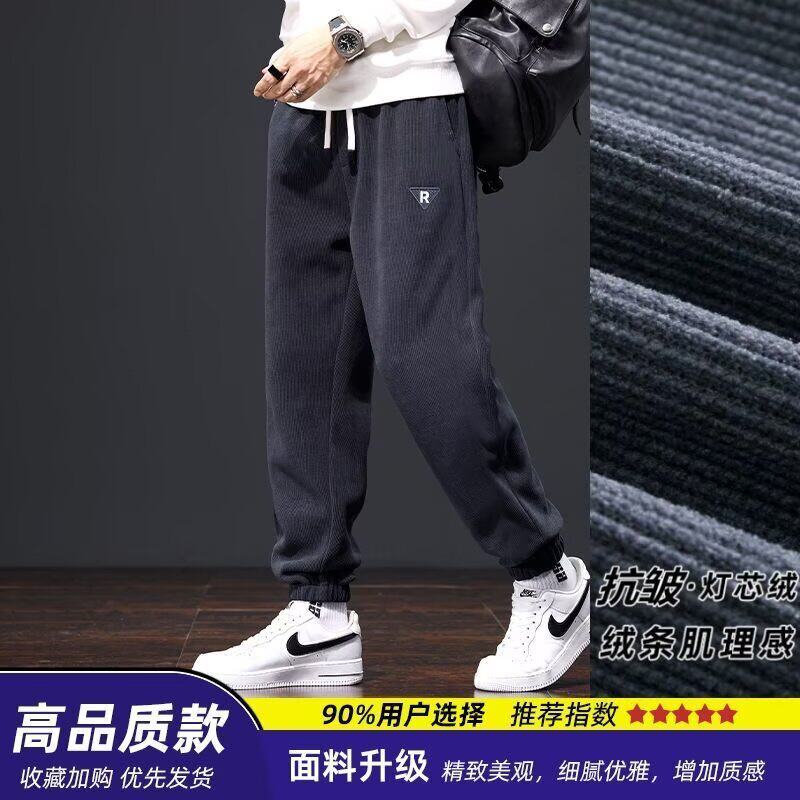 美式重磅灯芯绒卫裤男士2026新款秋冬季束脚休闲裤加绒加厚裤子男
