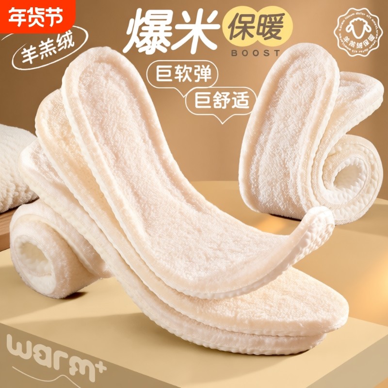 秋冬季毛绒运动保暖鞋垫超柔软踩屎感透气舒适羊羔绒加绒加厚鞋垫