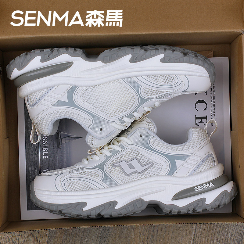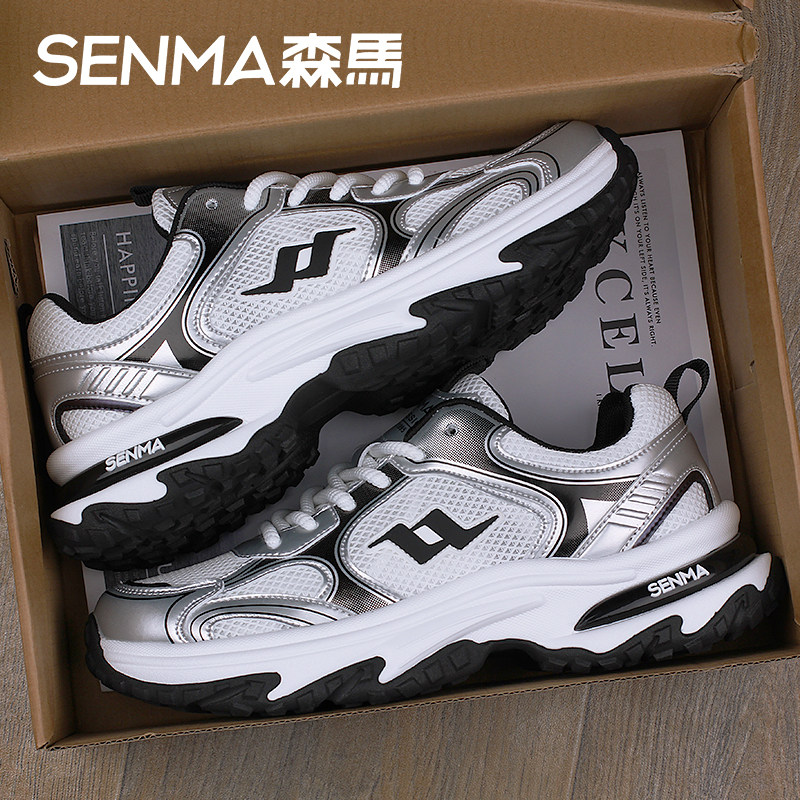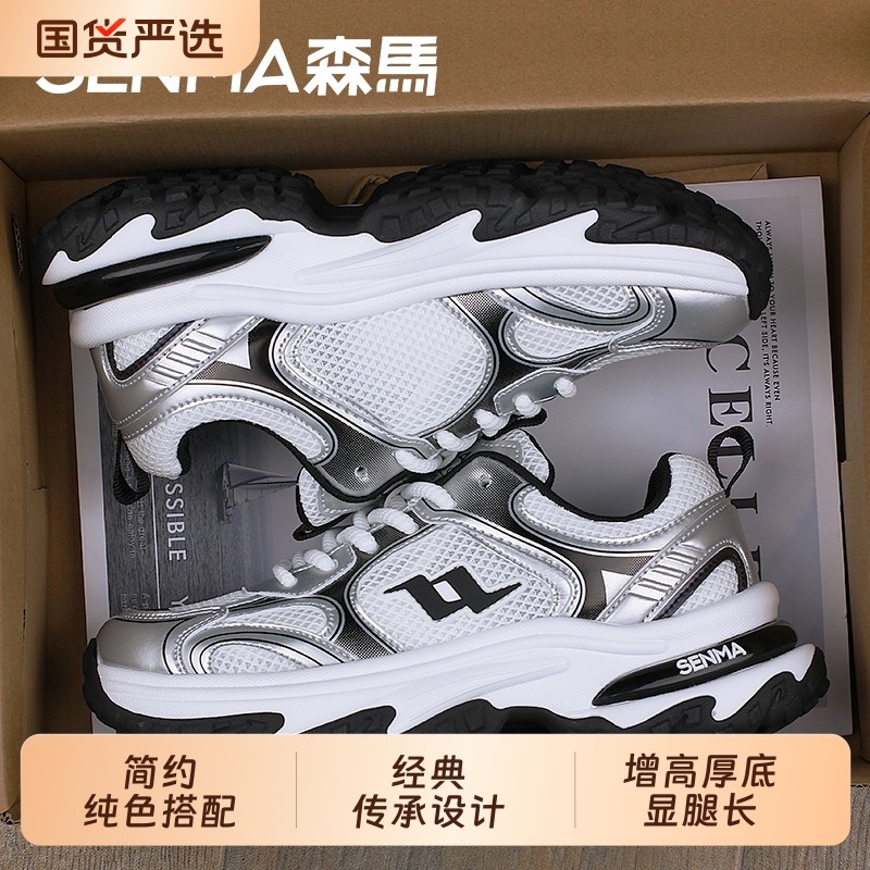 森马品牌胖脚加宽大码男女鞋秋冬单网透气运动增高情侣老爹鞋白银