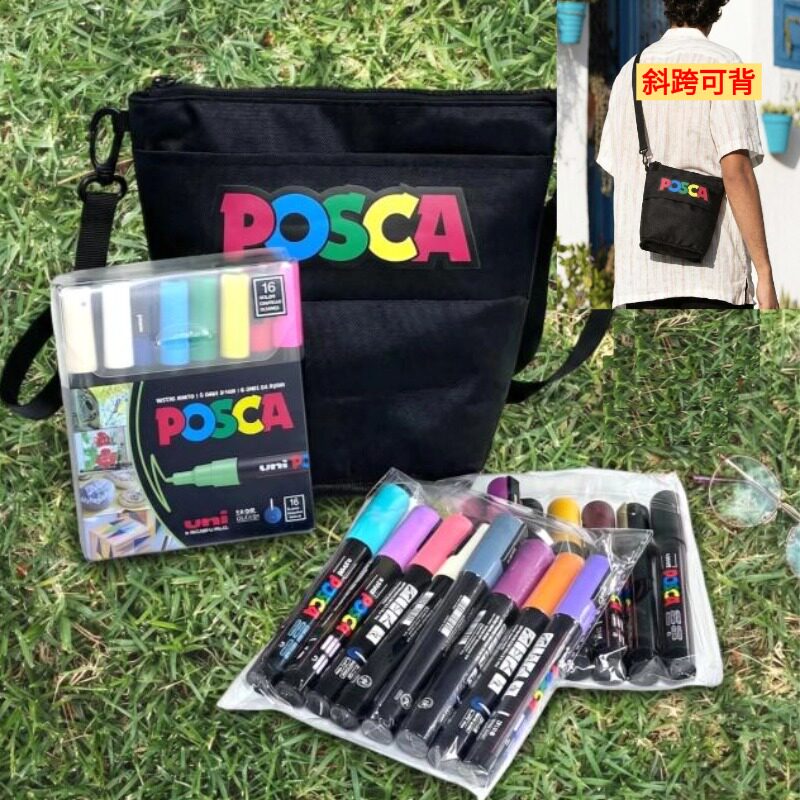 【新品】UNI三菱POSCA丙烯马克笔POP斜挎包海报涂鸦彩绘叠色皮包