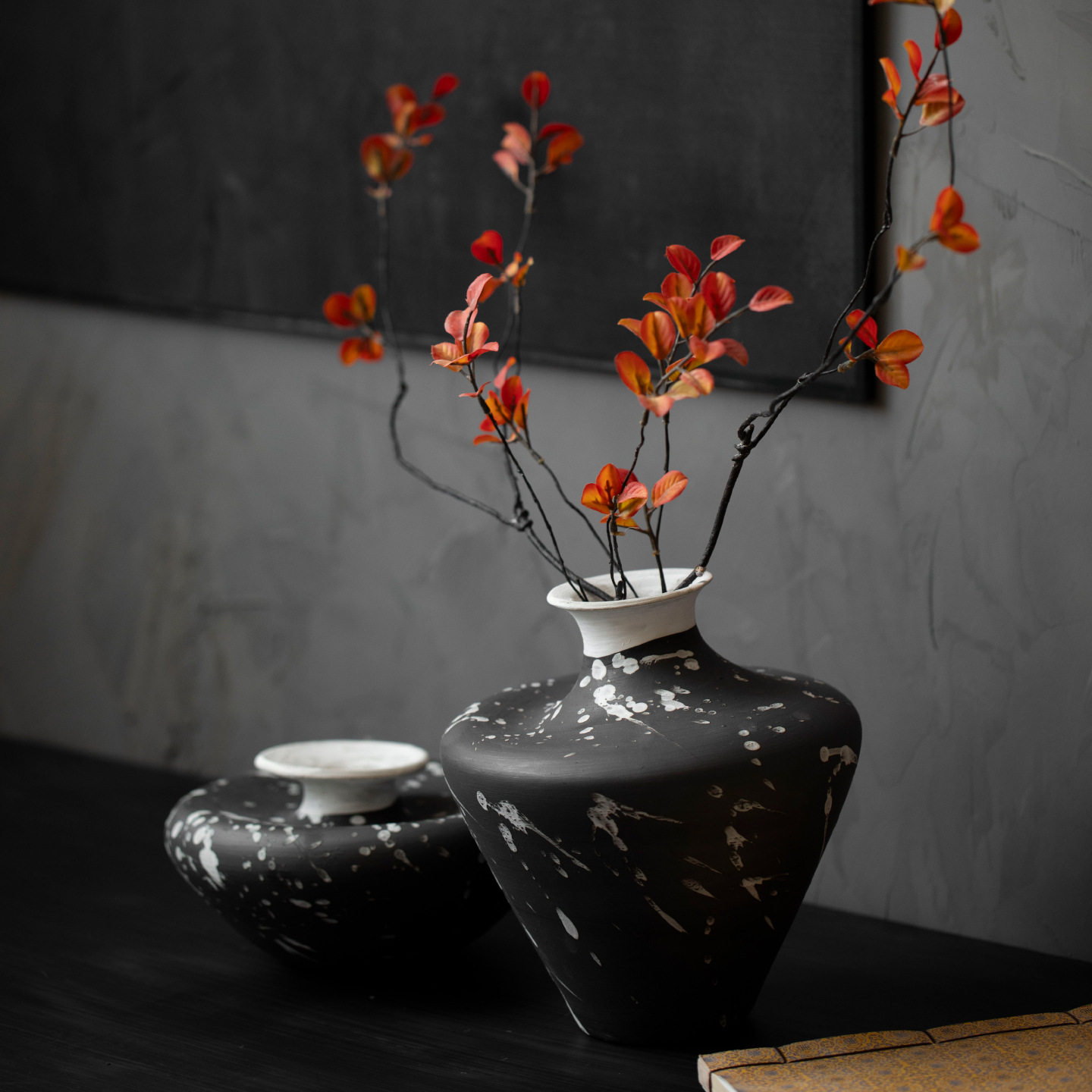 景德镇侘寂风陶瓷花瓶新中式禅意粗陶花器客厅书房插花装饰品摆件