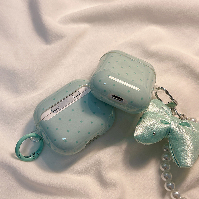 小香风薄荷波点链条挂饰适用AirPods4保护套新款iPod苹果耳机壳1/2代无线蓝牙3代airpodspro2代软防摔保护壳