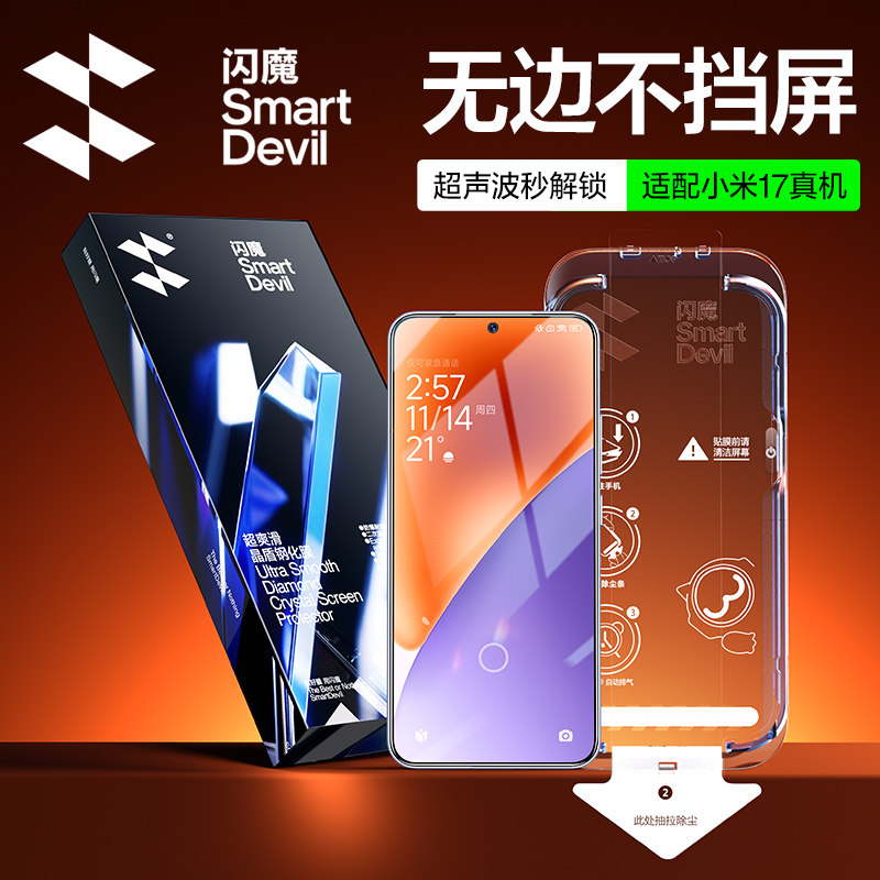 闪魔【晶盾全胶膜】适用小米17promax钢化膜17Ultra红米k90pro手机膜17覆盖pm无边不挡屏xiaomi秒解防爆贴膜