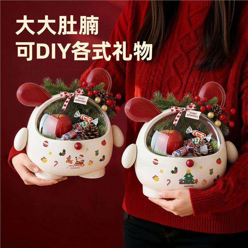 桌面可爱萌宠圣诞糖果盒卡通摆件防尘翻盖卧室头绳发绳首饰收纳盒