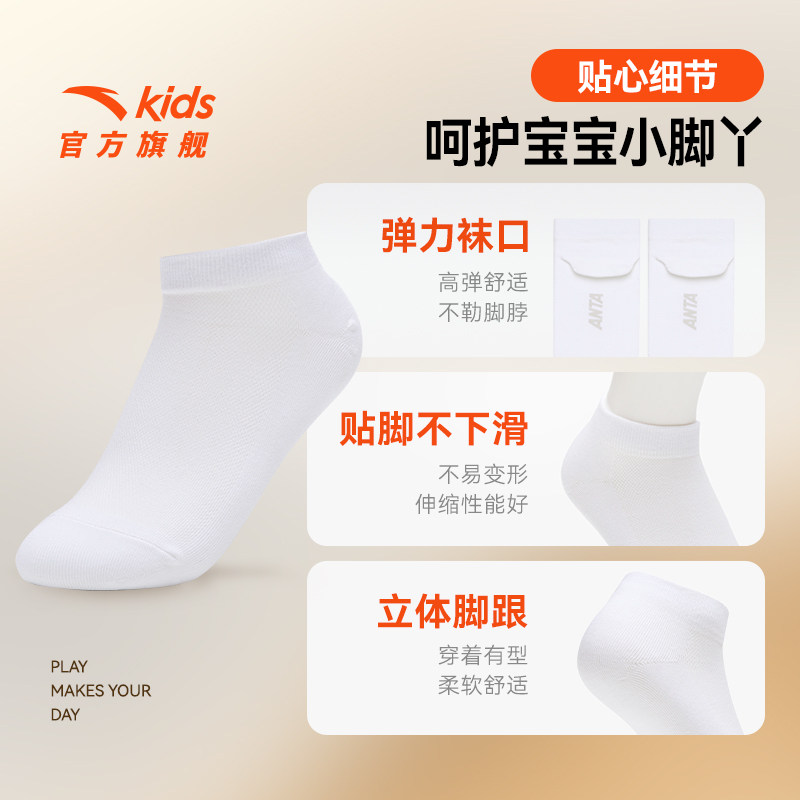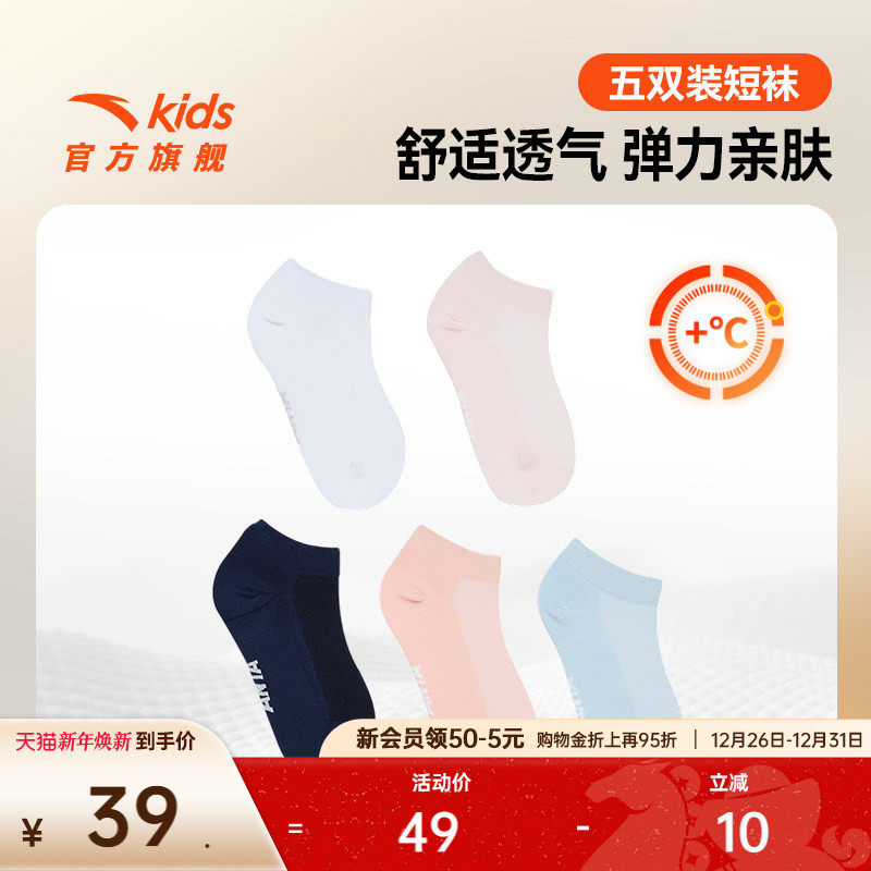 安踏儿童五双装袜子夏季男童袜子儿童长袜短袜子宝宝中袜女童袜子