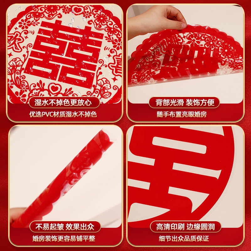 结婚专用喜字静电贴窗户玻璃囍字贴婚礼婚房布置婚车装饰窗花囍字