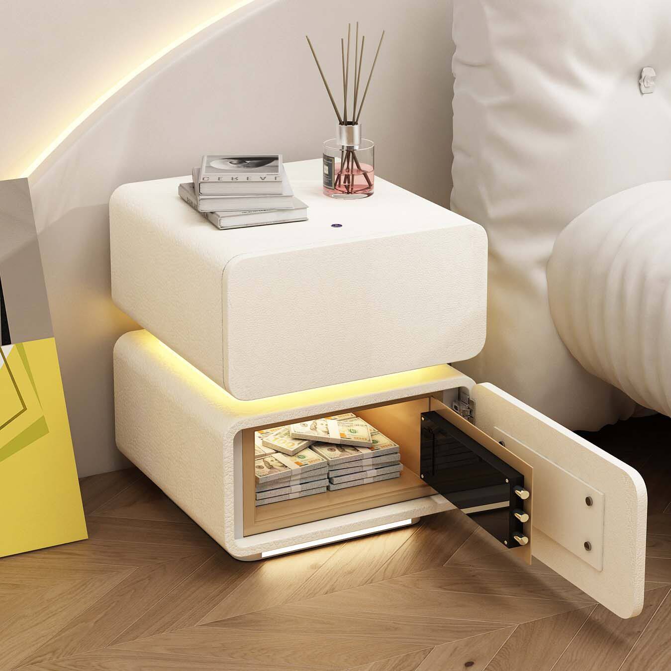 c智能悬浮带保险箱床头柜轻奢高级感2024新款柜子实木卧室主卧带