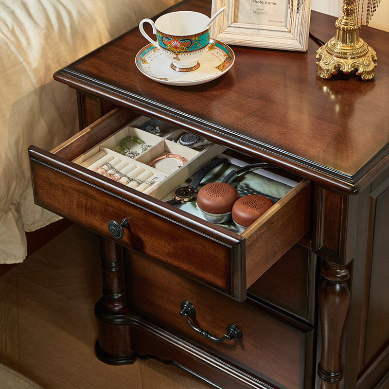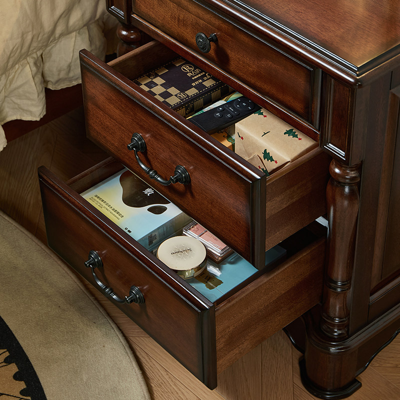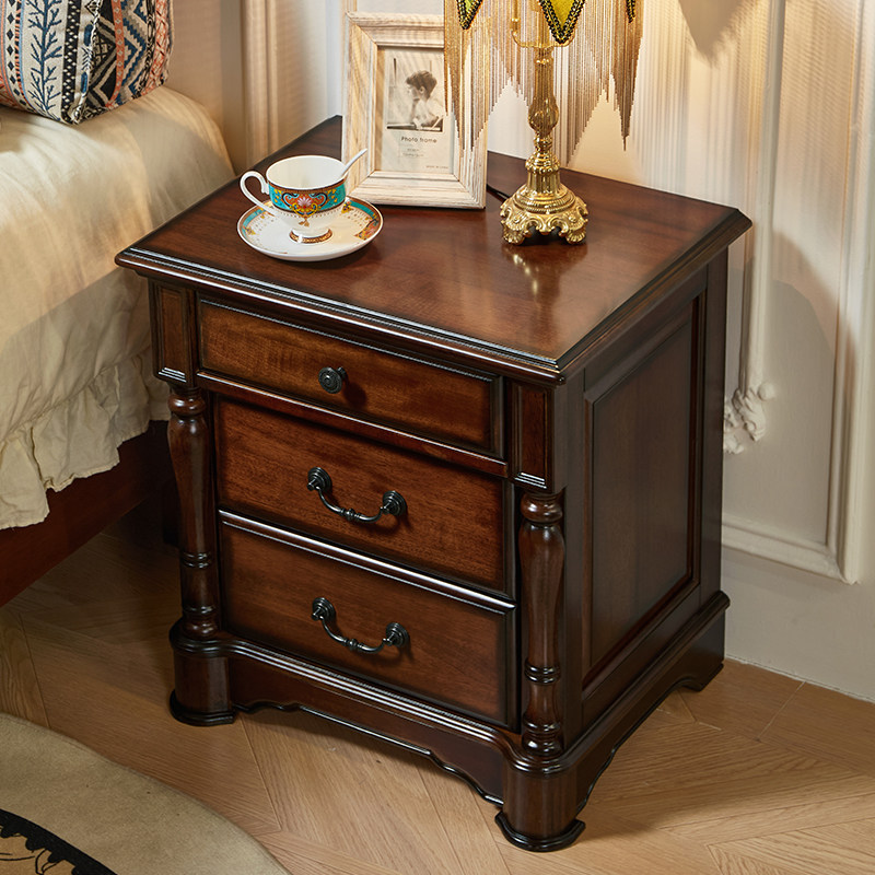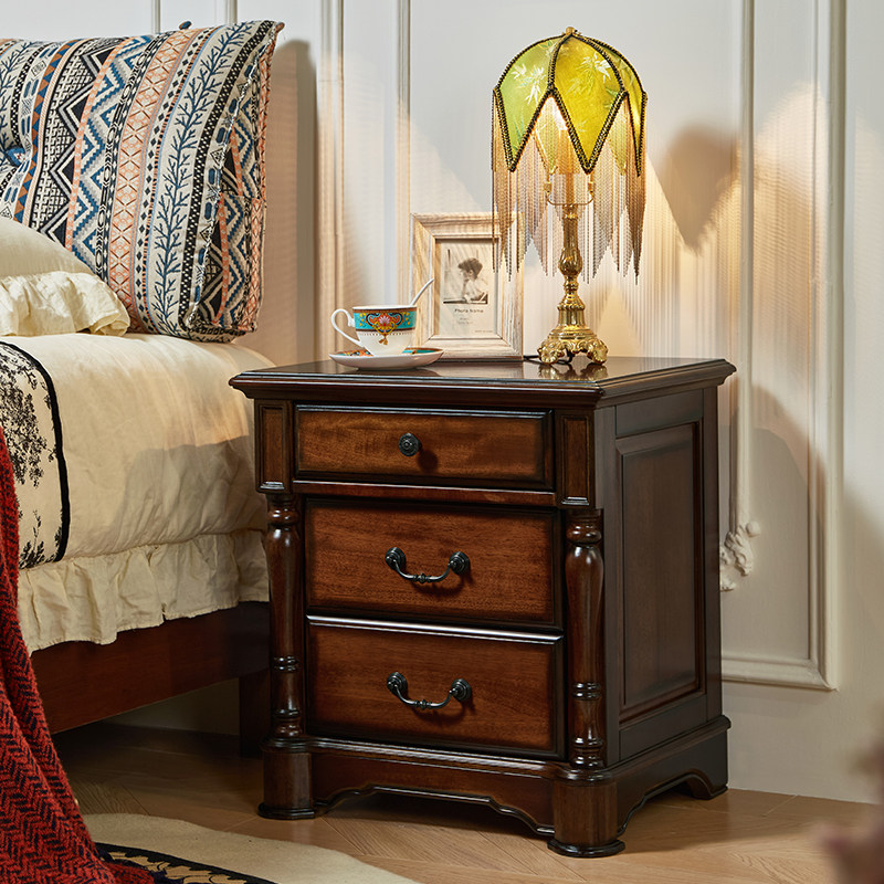 美式全实木床头柜美式乡村核桃木原木床边柜复古卧室三抽屉储物柜