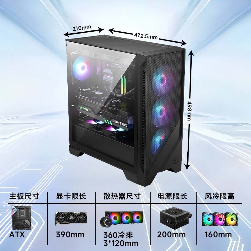 MSI微星FORGE 320L台式机电脑战斧M100L主板电源显卡atx中塔机箱