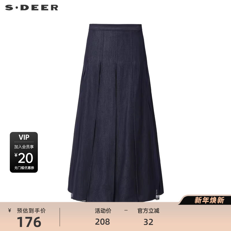 sdeer圣迪奥仿牛仔高腰拼接网纱不规则A字伞裙S24281125