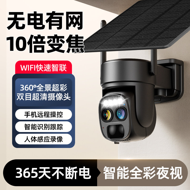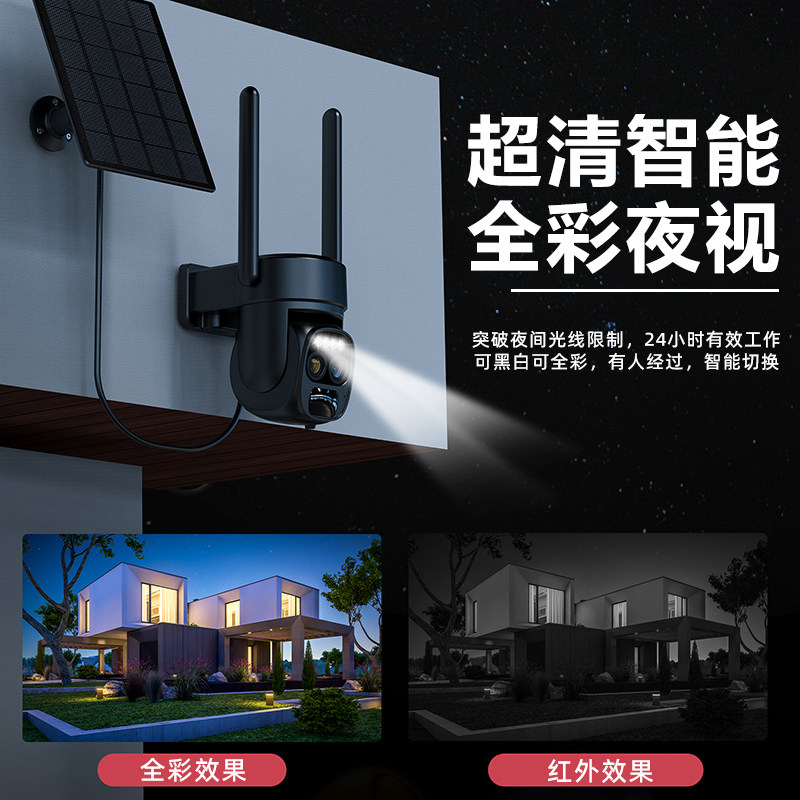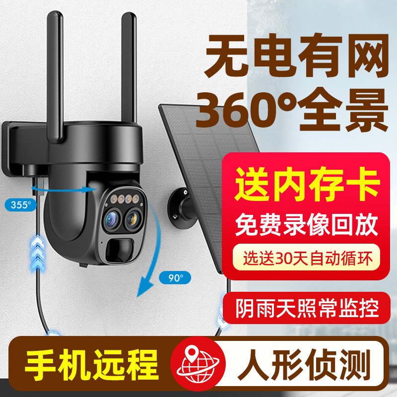 户外太阳能监控摄像头360度室外4G远程手机WiFi夜视无死角防水
