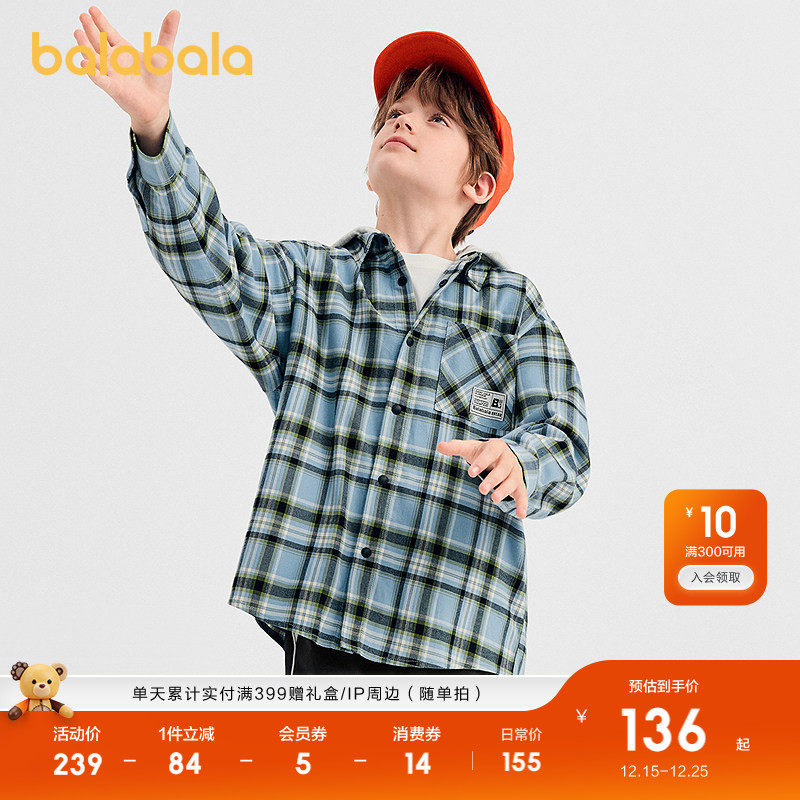 【商场同款】巴拉巴拉男童衬衫儿童长袖2025新款秋绒绒棉格纹外套