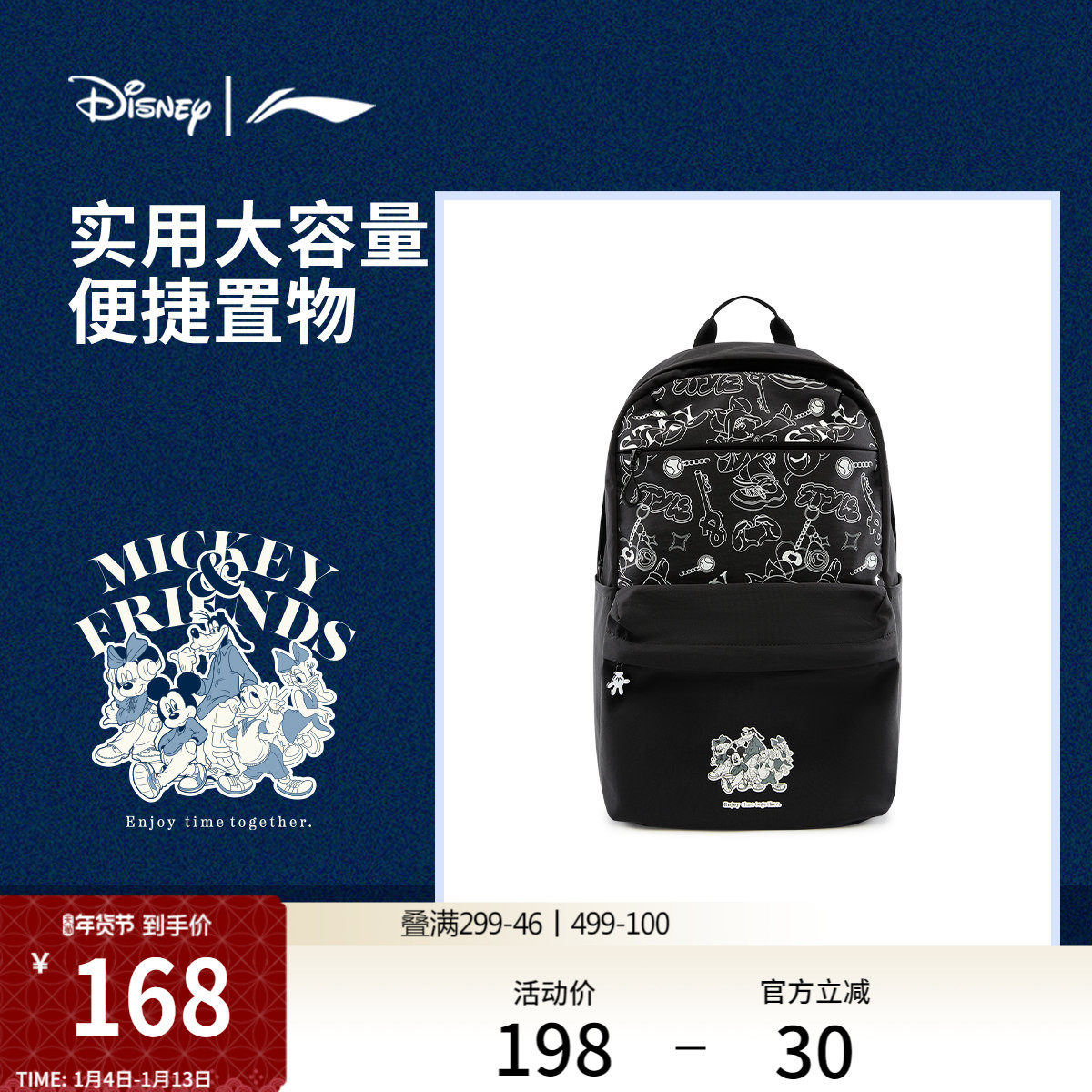 李宁|迪士尼米奇联名系列双肩包男女包2026新款印花运动背包书包