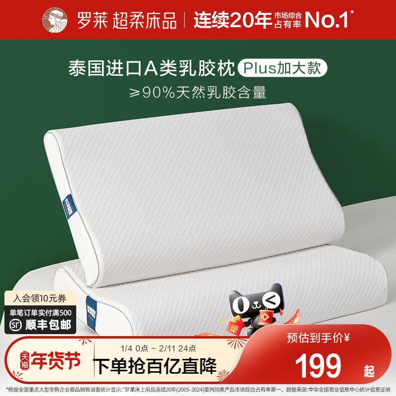 罗莱家纺床上用品枕头枕芯学生宿舍泰国进口A类乳胶枕加大款单只