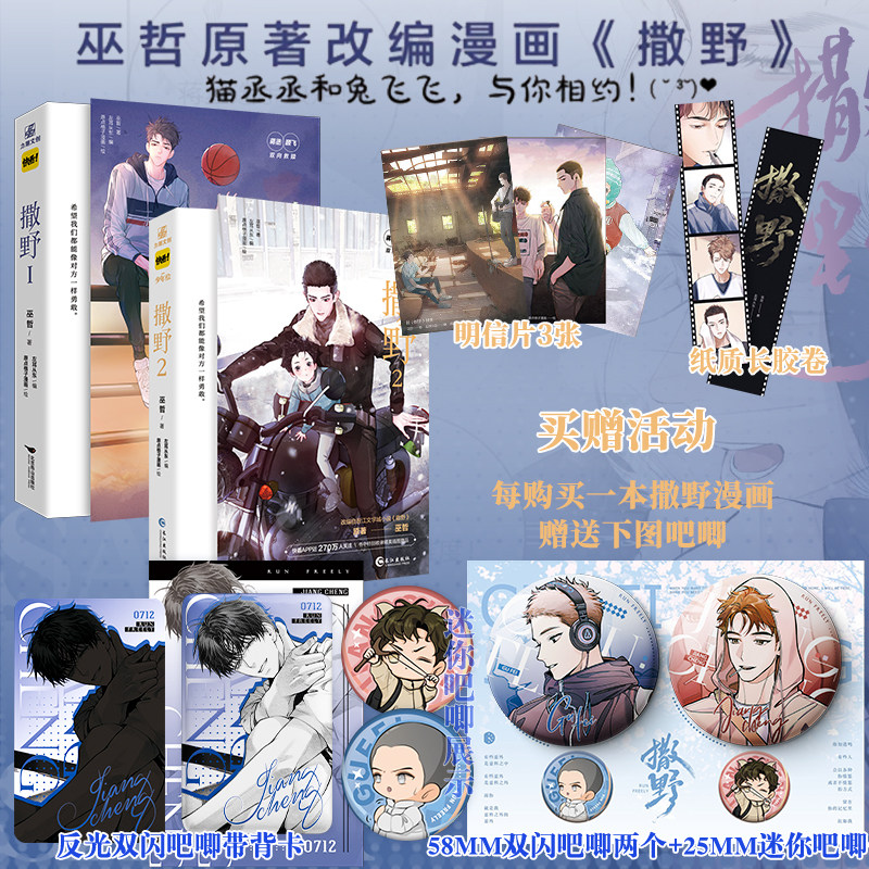 正版现货 撒野1 2漫画 改编自巫哲小说 原点格子漫画编绘 每购本撒野漫画赠反光吧唧及吧唧套装 翰联图书专营店