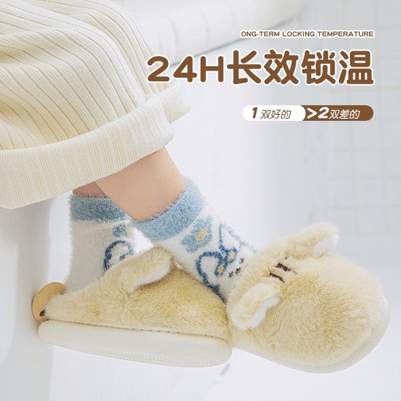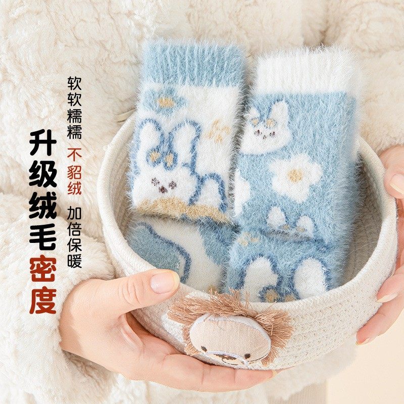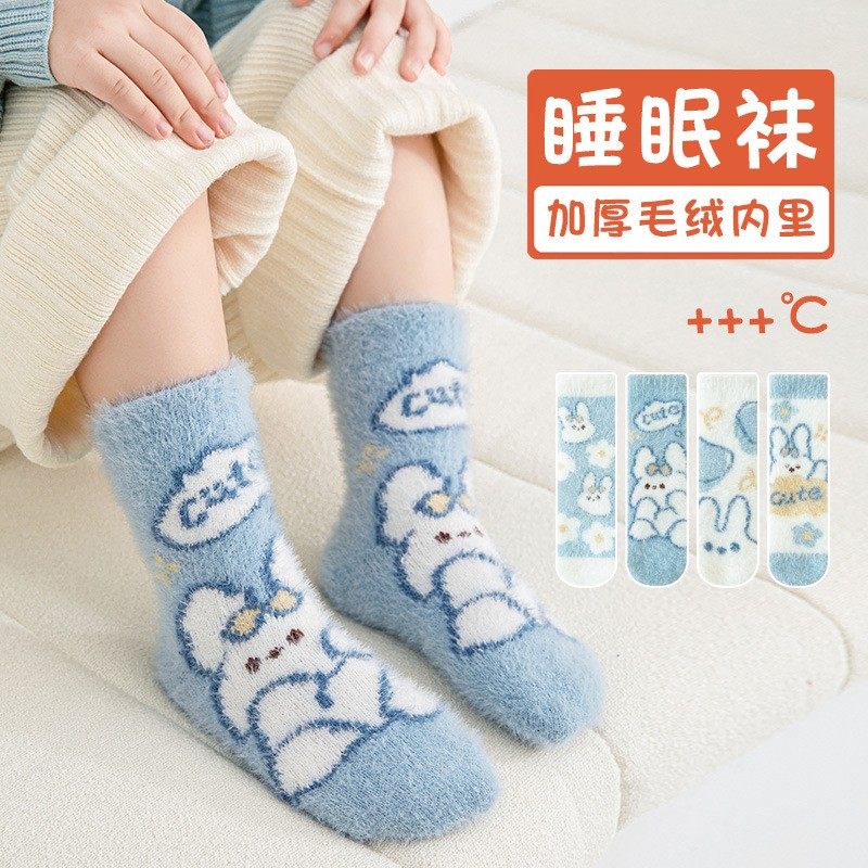 水貂绒儿童袜子冬季睡眠地板袜加绒加厚保暖男女童卡通秋冬厚长筒