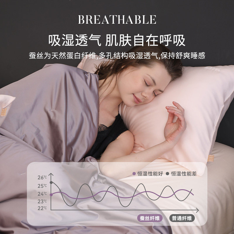 100%桑蚕丝填充 亲肤凉感 抗菌呵护 可水洗