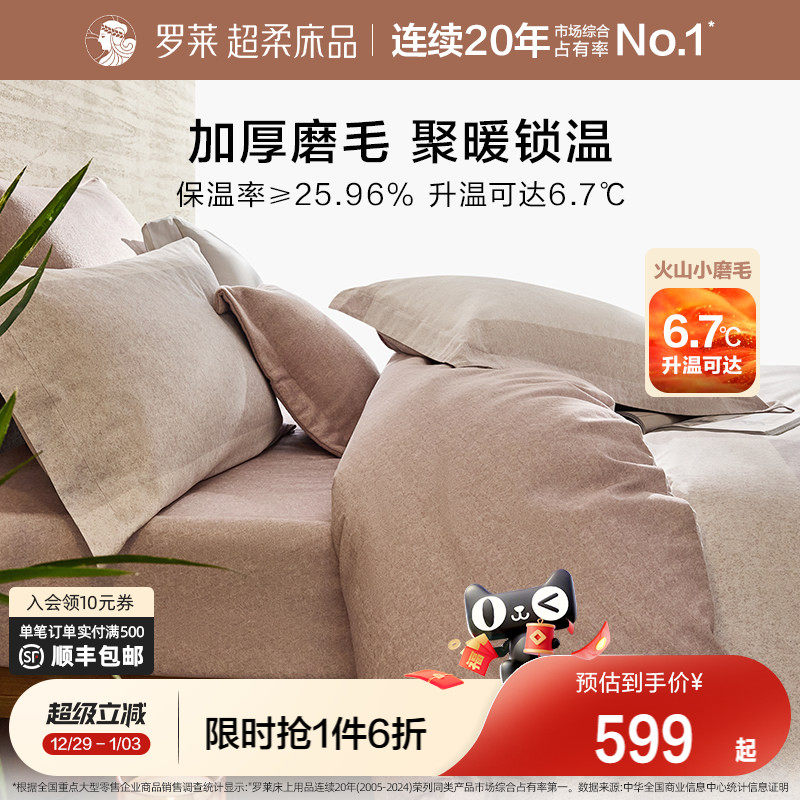 罗莱家纺25秋冬新品床上用品磨毛纯棉加厚床单被套全棉被罩四件套