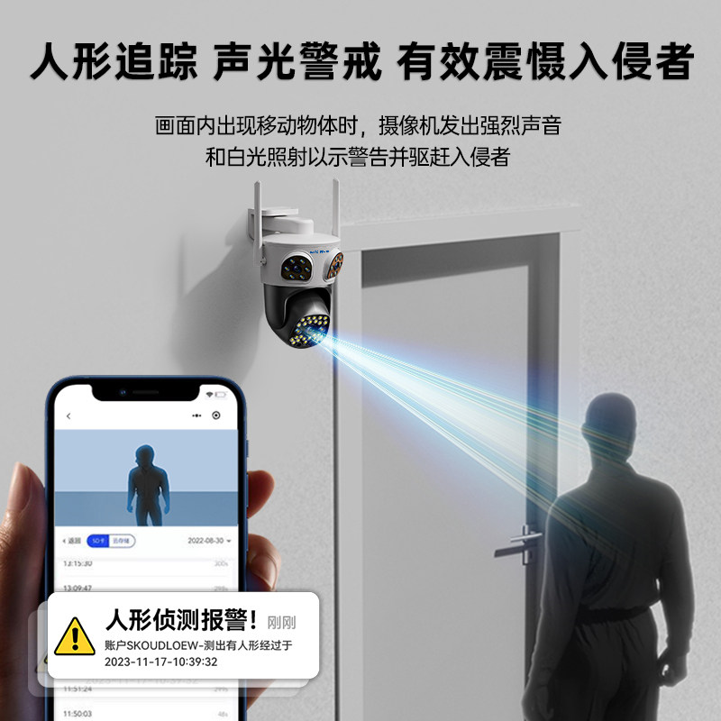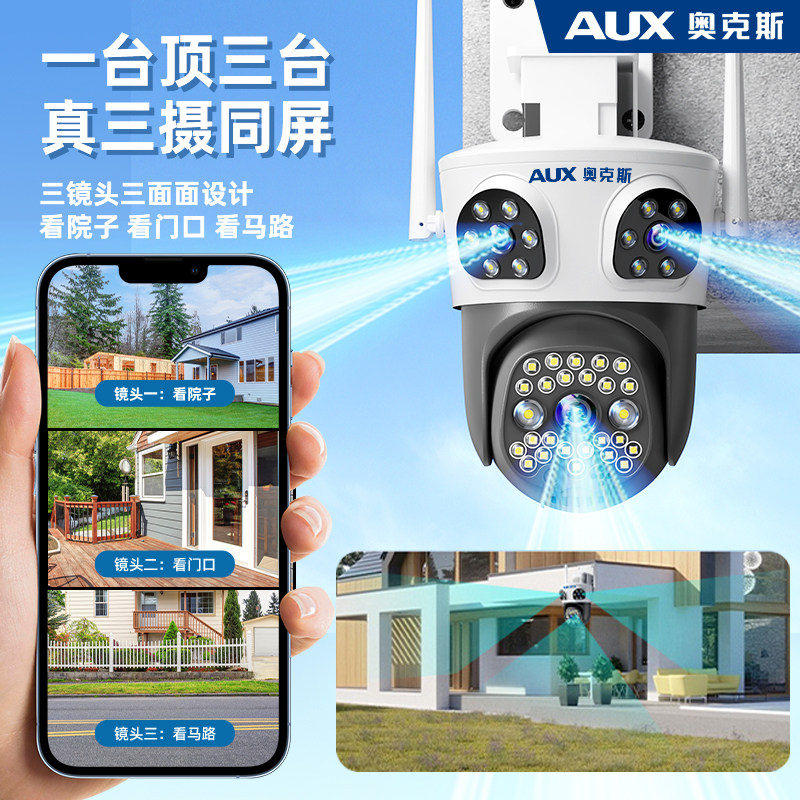 奥克斯摄像头监控器360度无死角室外家用手机远程无需网络4G高清