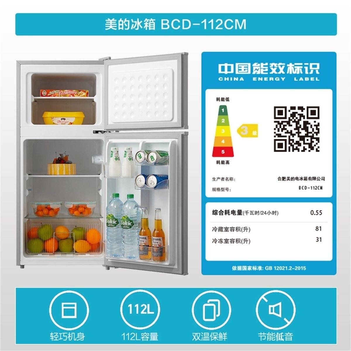 美的112家用双开门小型节能低音母婴儿童电冰箱