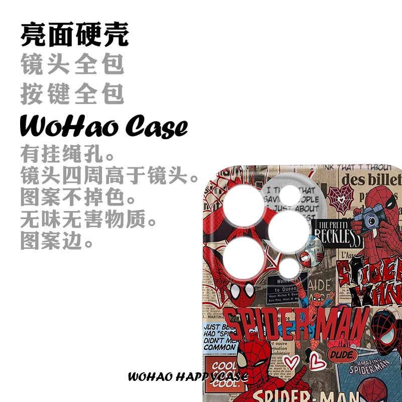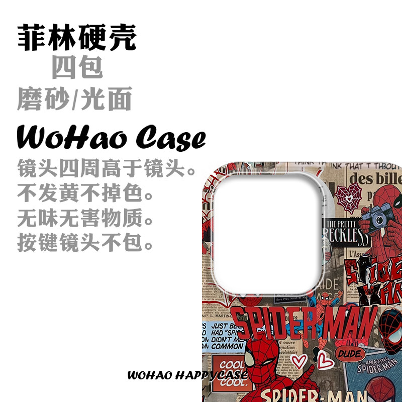 动漫漫威蜘蛛侠适用于苹果15手机壳14pro个性创意iPhone13高级12华为mate60pro菲林壳全包防摔小米14荣耀vivo