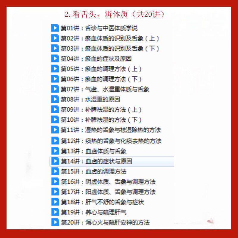 手诊面诊舌诊脉诊U盘视频教程老中医诊断入门教学中医馆资料优盘