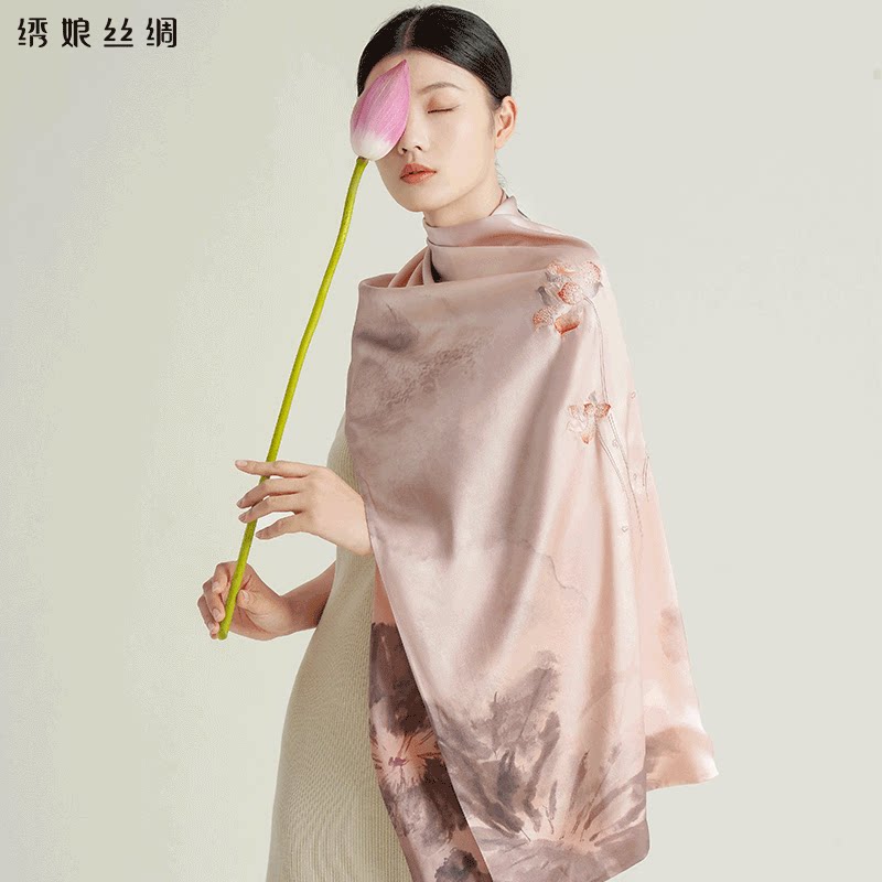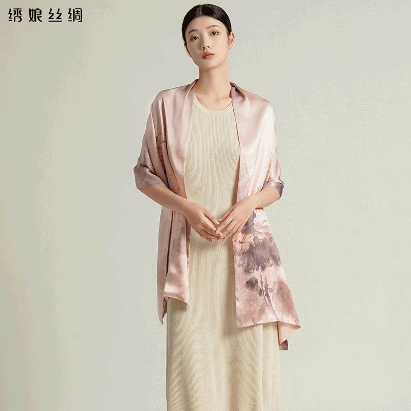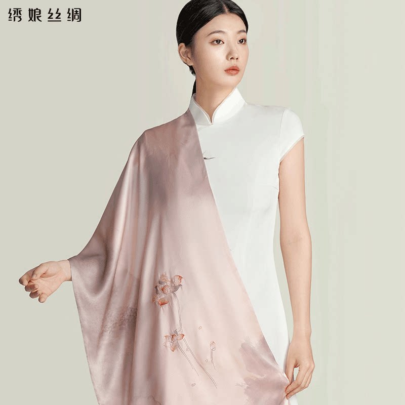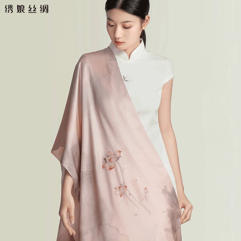 绣娘丝绸新款真丝丝巾100%桑蚕丝手工苏绣披肩女外搭围巾高级礼盒