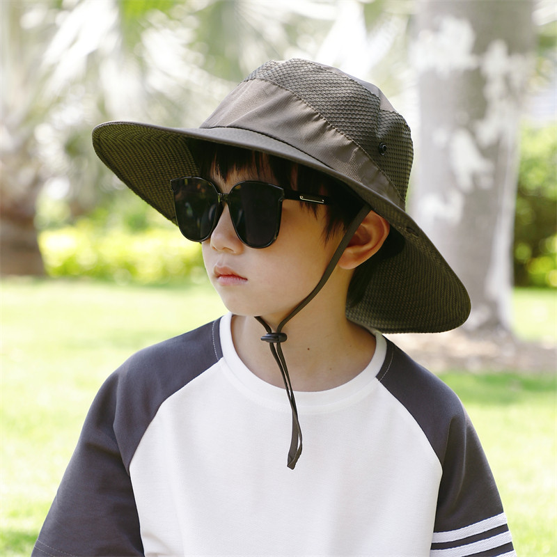 户外防晒帽子大童夏季超薄速干大檐防紫外线亲子透气渔夫牛仔帽子