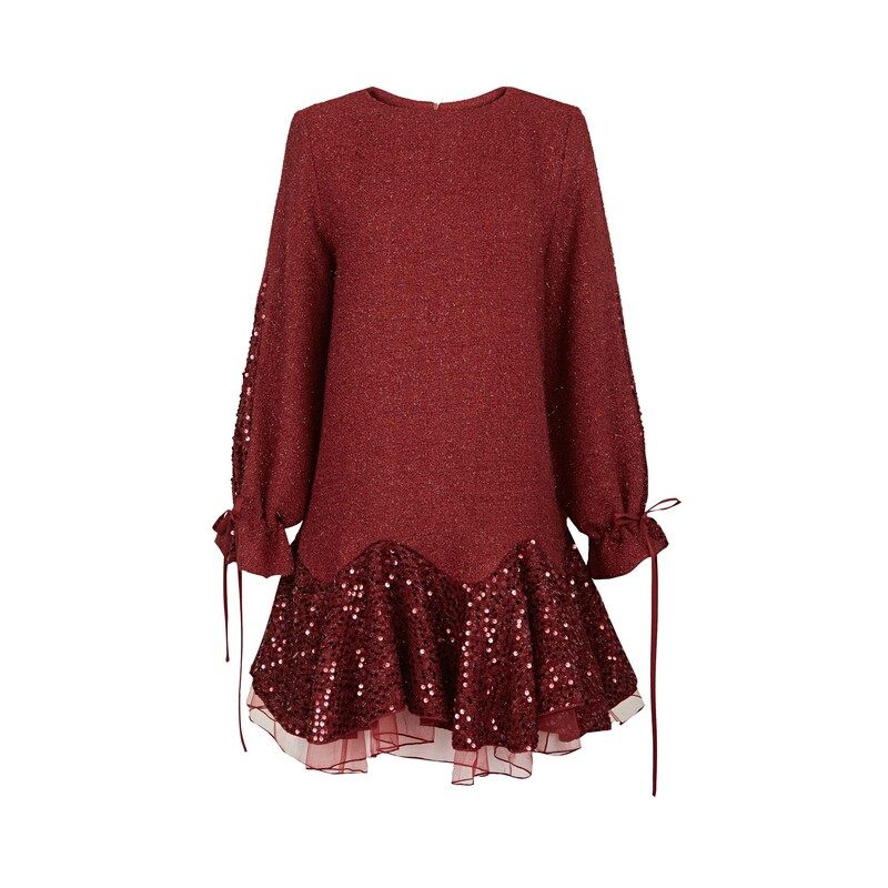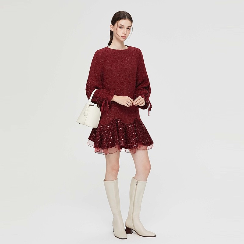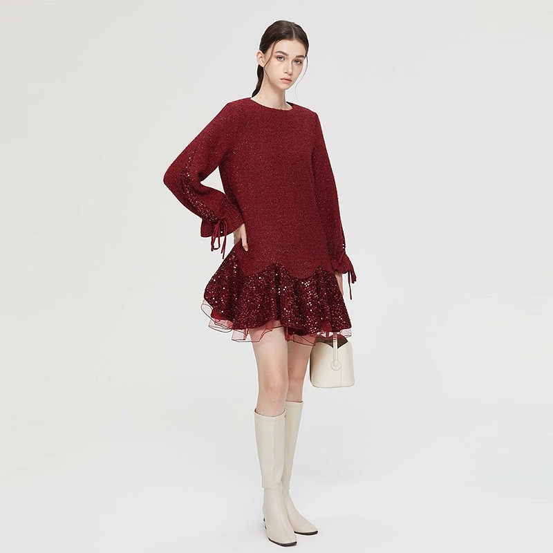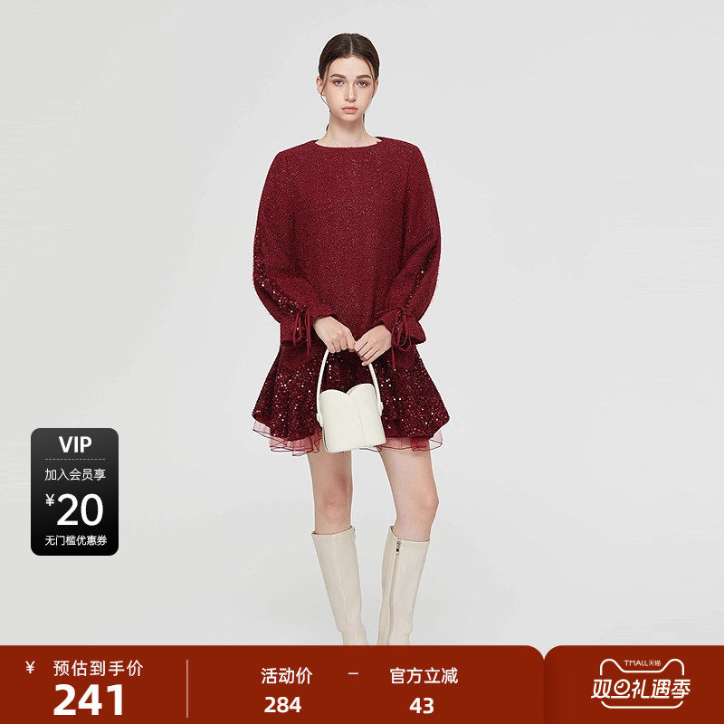 【新年款】sdeer圣迪奥女装复古系带网纱亮片毛呢外套S234Z2261