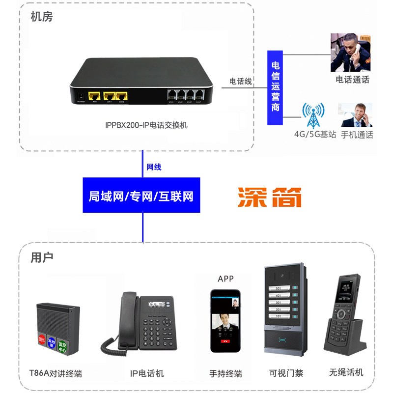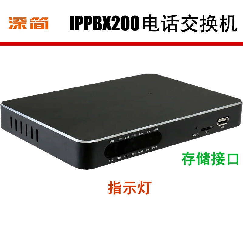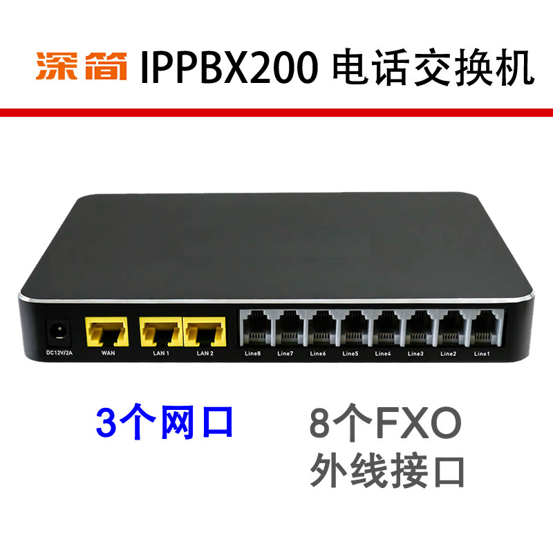 深简IPPBX200-8FXO是8进200出电话交换机UC统一通信融合通讯通话录音电话会议广播叫醒服务SIP话机集团程控ip