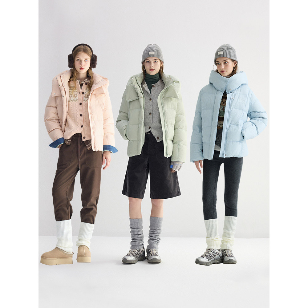【鞠婧祎同款】鸭鸭2025年冬新款百搭短款女士纯色立领羽绒服外套